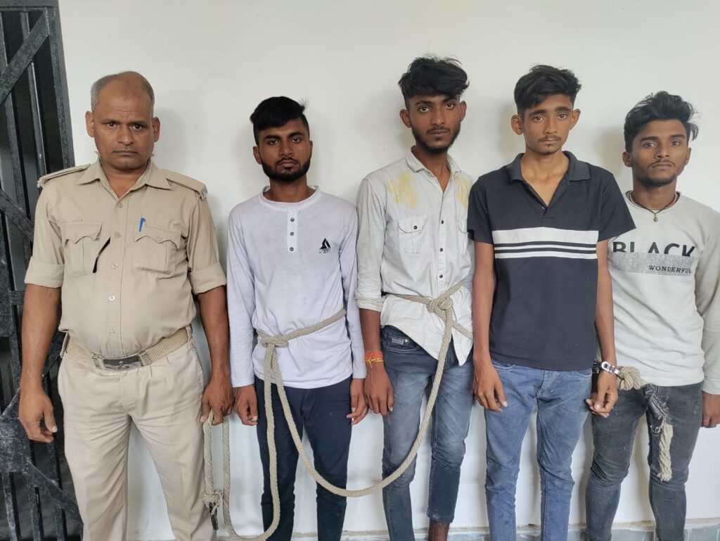 एक साथ चार बदमाश सभी नए उम्र के किसी लूट पाट योजना के तहत किसी को मुल्ला बनाने की फिराक भब थे तभी गुप्त सूचना पर पहुंची पुलिस ने गिरफ्तार कर बदमाशो का मोंये मोंये कर दिया। साथ ही कई आपत्तिजनक समान के साथ पुलिस ने गिरफ्तार किया है. जहां गिरफ्तार बदमाशों में चांद थाना क्षेत्र के कलौरा गांव निवासी मनोज यादव का पुत्र प्रिंस यादव, नारद यादव का पुत्र सोनू यादव, छोटका अमांव गांव निवासी विपिन बिहारी सिंह का पुत्र अभिषेक सिंह और दुर्गावती थाना क्षेत्र के इसरी गांव निवासी जितेंद्र यादव का पुत्र निलेश यादव शामिल है.