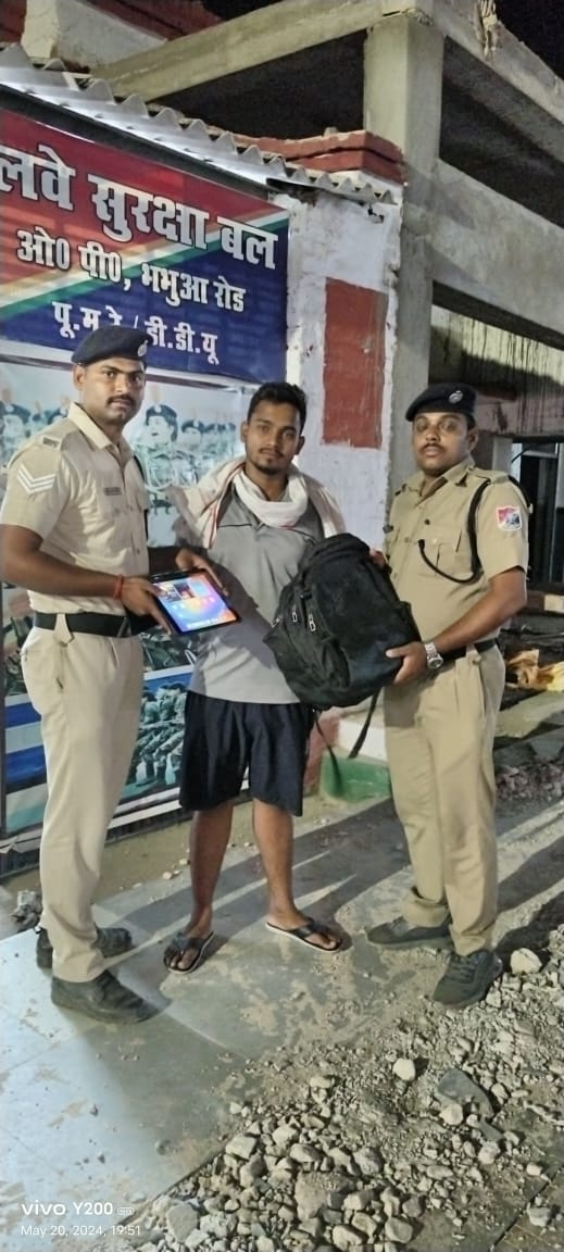 गाड़ी संख्या 12397 महाबोधि एक्सप्रेस से यात्री का गिरा हुआ बैग जिसमें एप्पल कंपनी का आईपैड भभुआ रोड आउटपोस्ट से 15 किलोमीटर की दूरी पर ब्लॉक क्षेत्र से खोज कर OPERATION -AMANAT के तहत यात्री को रेलेर जीआरपी ने सुपुर्द किया । जिसका अनुमानित कीमत 65000₹ के करीब बताई जा रही है।